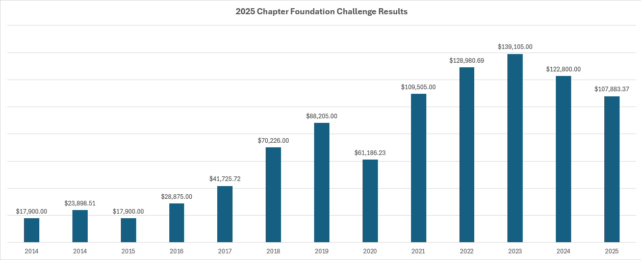 Since the Challenge began in 2014, chapters have contributed more than $940,000 to the ACFE Foundation. With the momentum we are seeing, we look forward to 2026 when we expect to surpass $1 million in total chapter contributions.